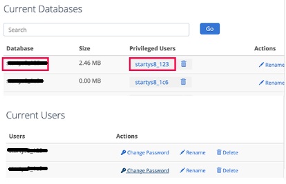 Questo ti porterà alla pagina di gestione del database nel dashboad dell’hosting. Da qui, puoi scoprire il nome del tuo database e il nome utente.